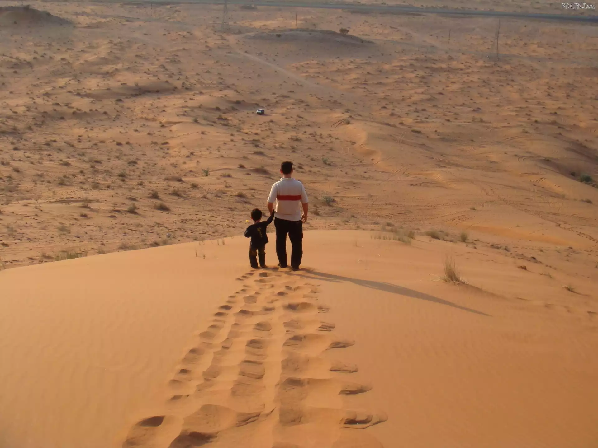 Dziecko, Spacer, Mężczyzna, Pustynia - faceci.biz